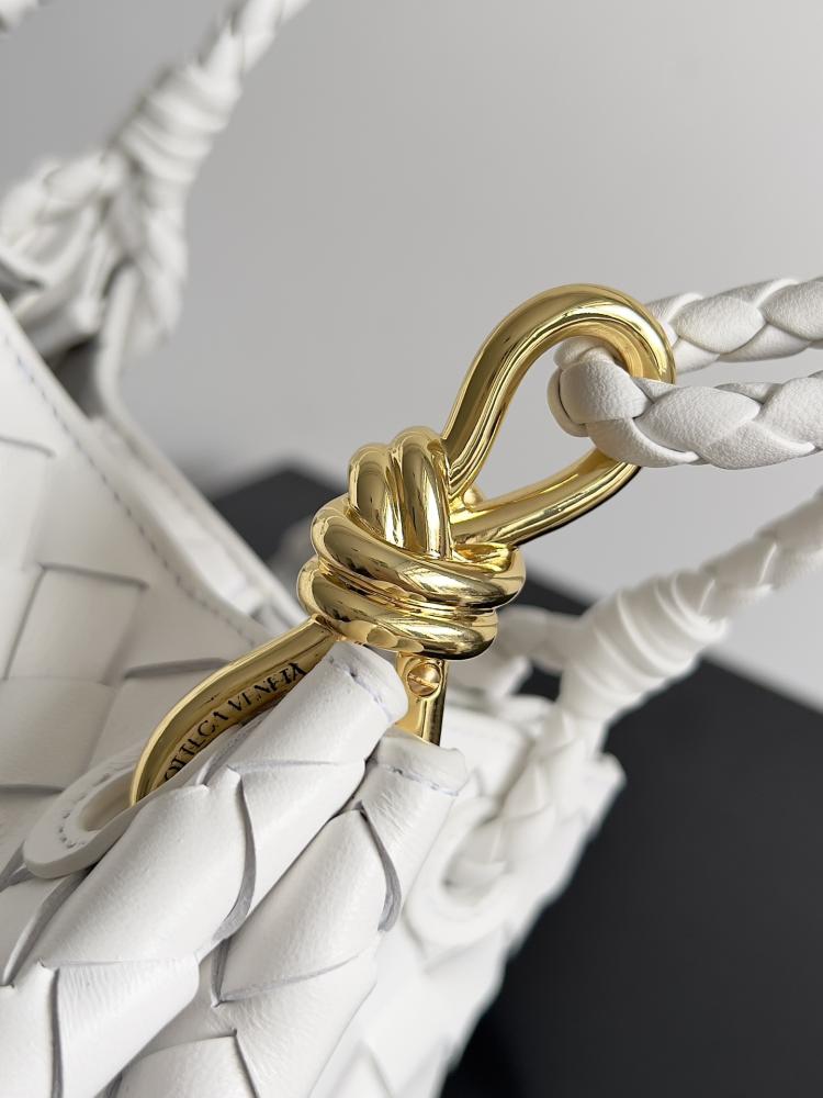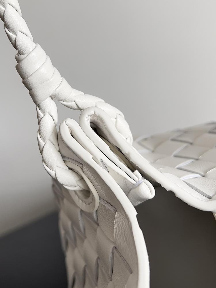 مصنوعة بالكامل من جلد طبيعي منسوج يدويًا بتقنية Intrecciato الشهيرة، وتتميّز بمقابض طويلة مضفّرة تتيح حملها على الكتف بكل راحة، إلى جانب حمالة قابلة للإزالة تُستخدم ككروس بودي.