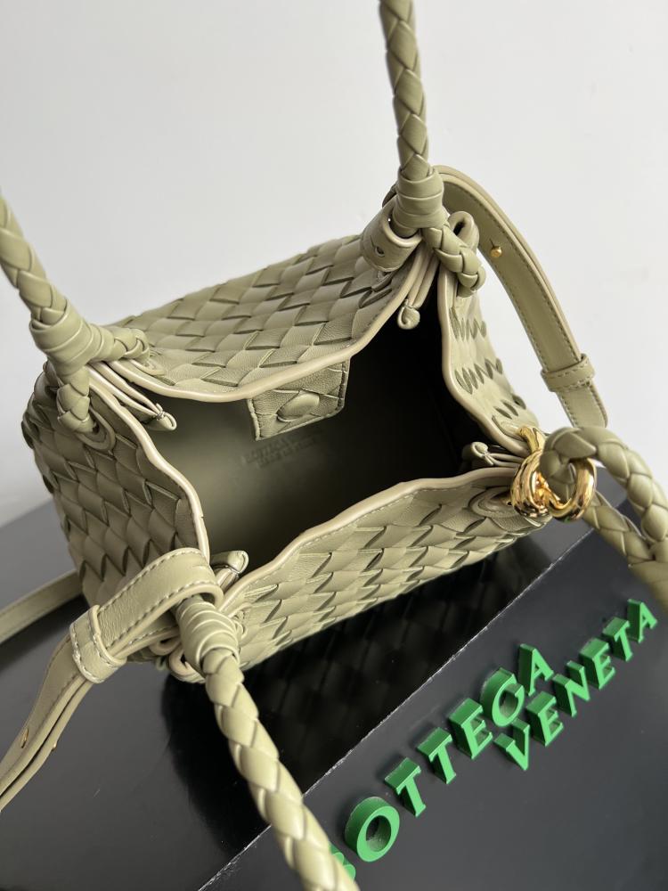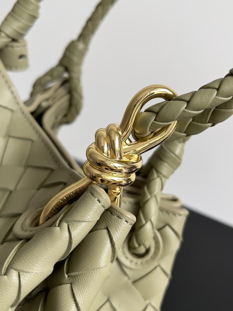مصنوعة بالكامل من جلد طبيعي منسوج يدويًا بتقنية Intrecciato الشهيرة، وتتميّز بمقابض طويلة مضفّرة تتيح حملها على الكتف بكل راحة، إلى جانب حمالة قابلة للإزالة تُستخدم ككروس بودي.
