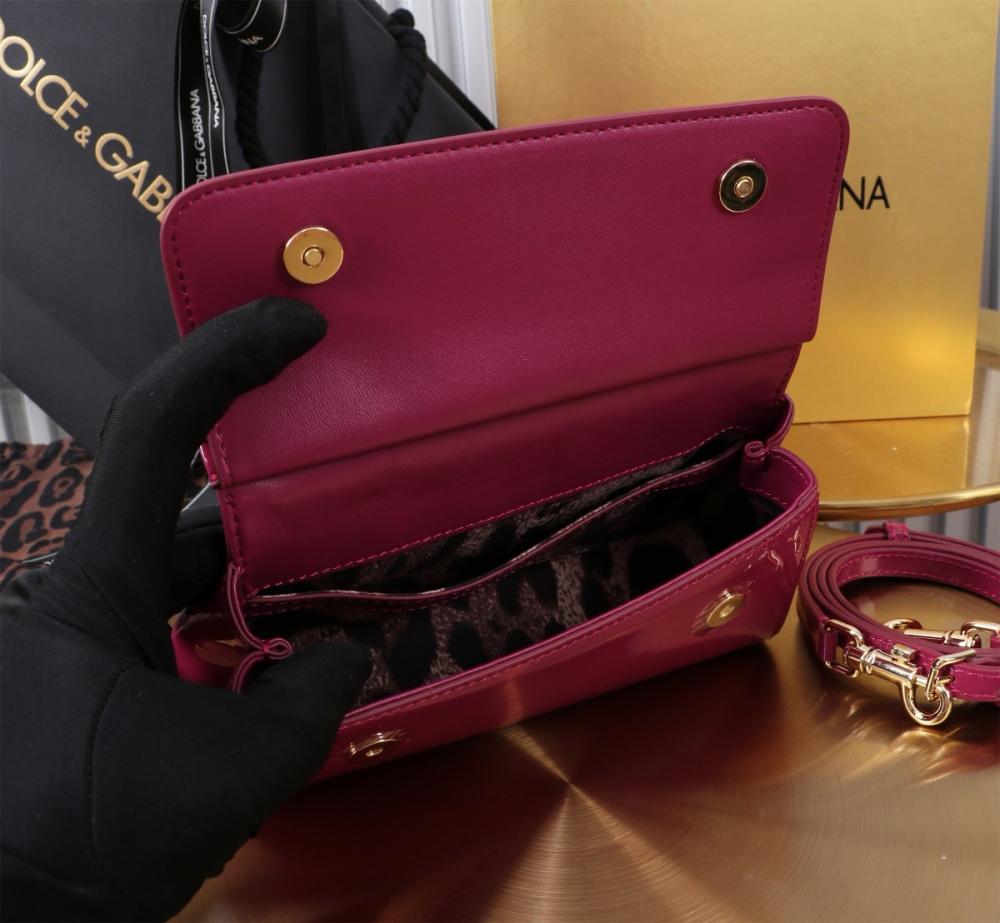 حقيبة Dolce & Gabbana Sicily Mini المصنوعة من الجلد اللامع تجسّد الفخامة الإيطالية بكل تفاصيلها. تصميمها الهيكلي الكلاسيكي مع اللمعة الأنيقة يجعلها خيارًا مثاليًا للمناسبات الراقية والإطلالات المسائية. تجمع بين الجمال والعملية، وتأتي بحزام يمكن فصله لتوفير أكثر من طريقة لحملها.