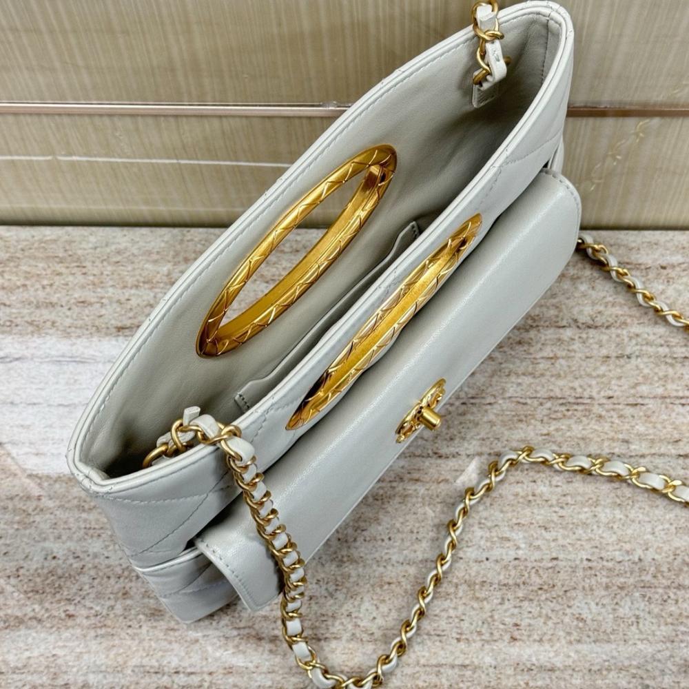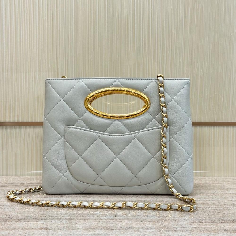 حقيبة Chanel Bag تأتي بتصميم كلاسيكي فاخر ومميز من الجلد الصناعي المبطن، مع لمسة عصرية من خلال فتحة اليد البيضاوية المحاطة بإطار معدني ذهبي منقوش بكلمة CHANEL. تصميم أنيق يجمع بين الراحة والأناقة.