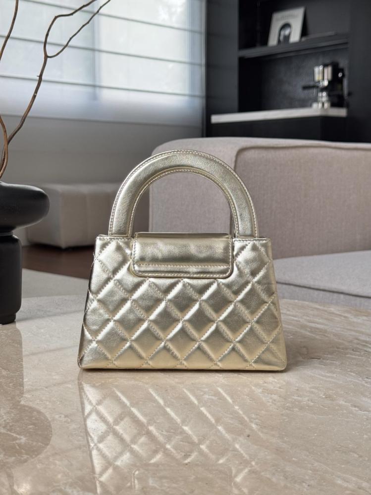شنطة Chanel Mini Kelly Bag بتصميم فاخر يعكس أناقة دار شانيل الكلاسيكية. تأتي بتطريز مبطّن فاخر وقفل CC الأيقوني بدوران معدني. تبرز هذه الشنطة بالمقبض العلوي الدائري وسلسلة طويلة مدمجة بالجلد، مما يمنحها حضوراً لافتاً في كل إطلالة.