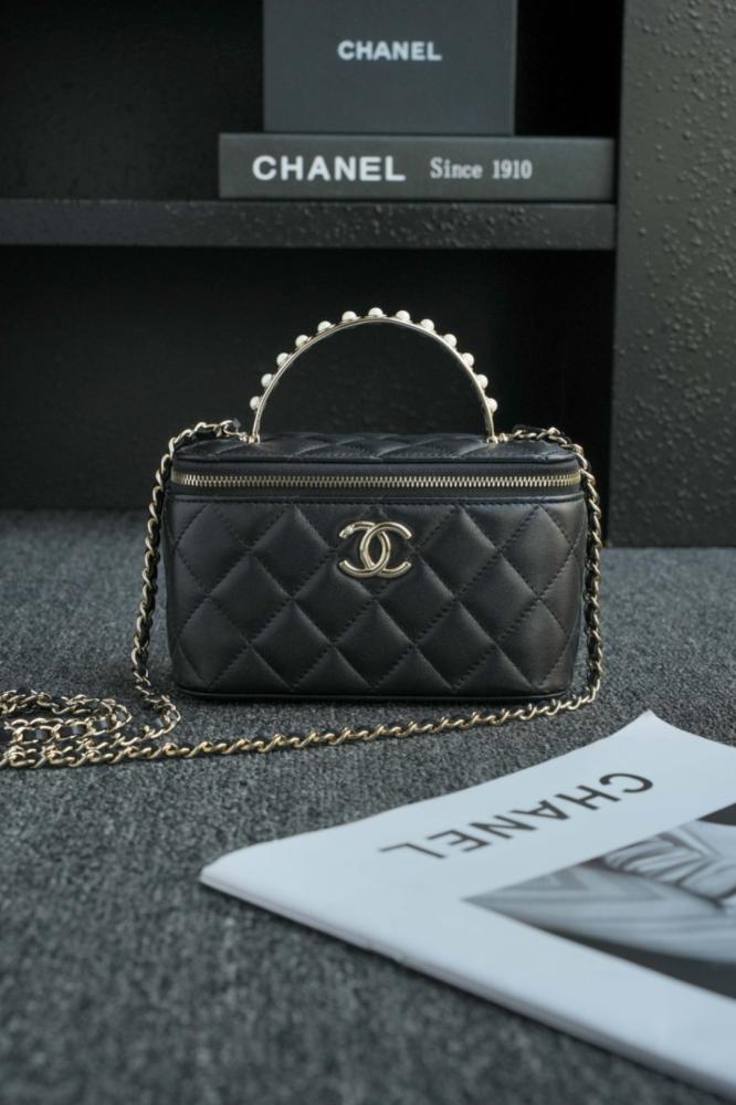 - تصميمها المبطّن يعطيها طابع شانيل الأصيل والسلسلة الذهبية تضفي على مظهرك لمعان.