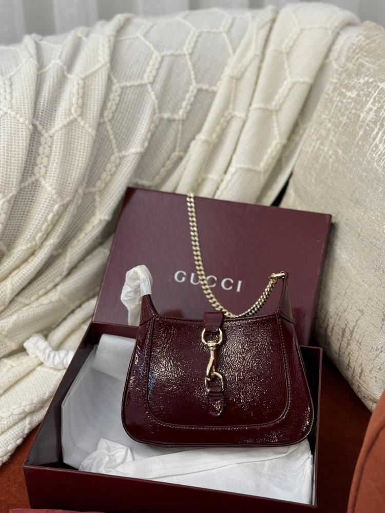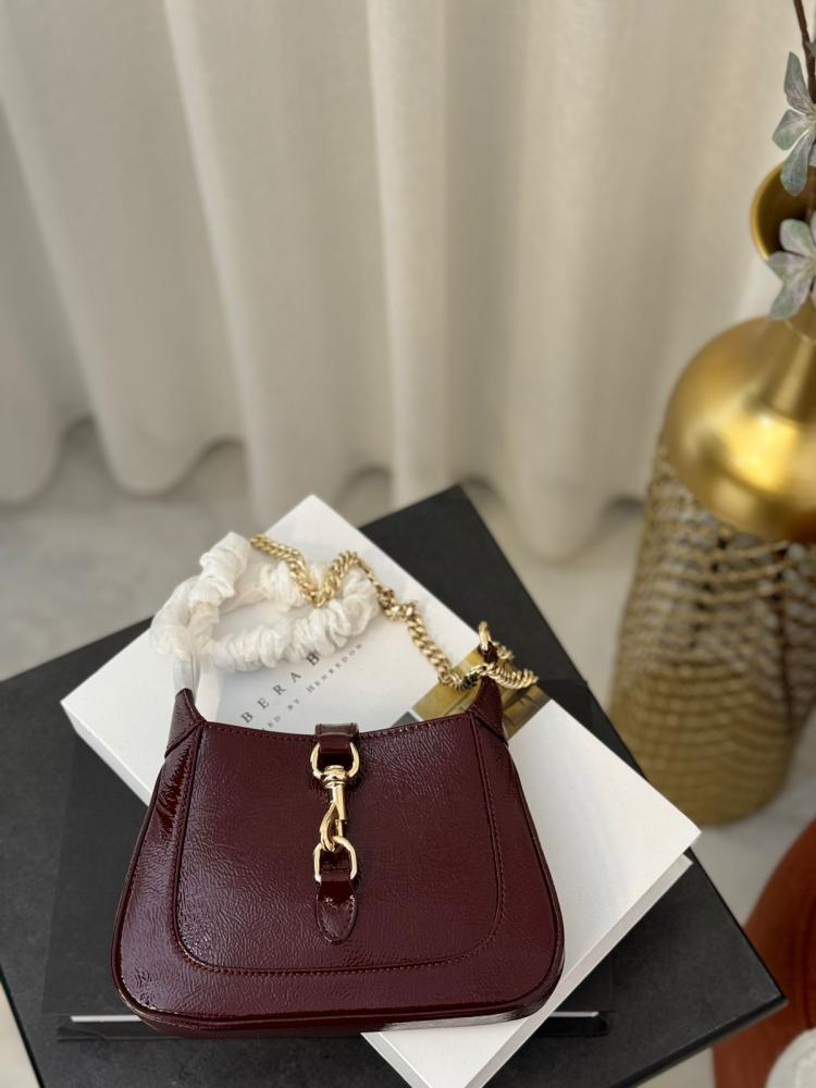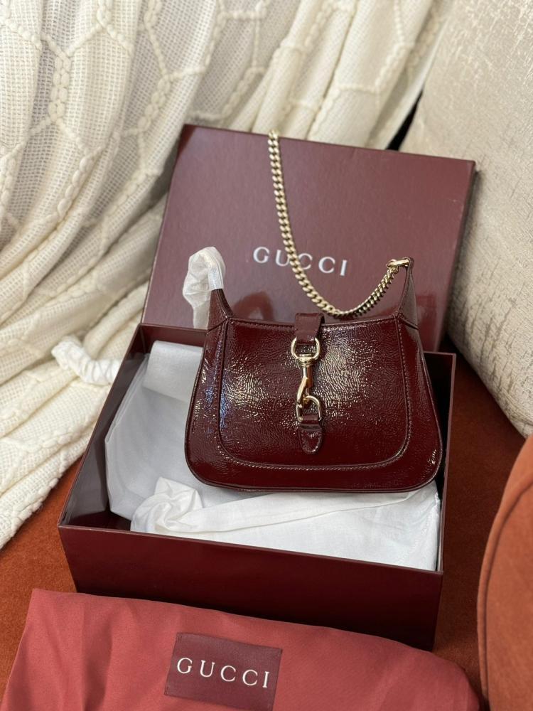 شنطة Gucci Jackie Notte Mini تجمع بين فخامة التصميم الكلاسيكي وأناقة الحجم الصغير. تأتي بقَصّة هلالية راقية مع تشطيب جلدي لامع وسلسلة ذهبية تضيف لمسة فاخرة، بينما تزيّن الإغلاق الأمامي قطعة Jackie الأيقونية التي تعزز من طابعها الأنيق والعصري.