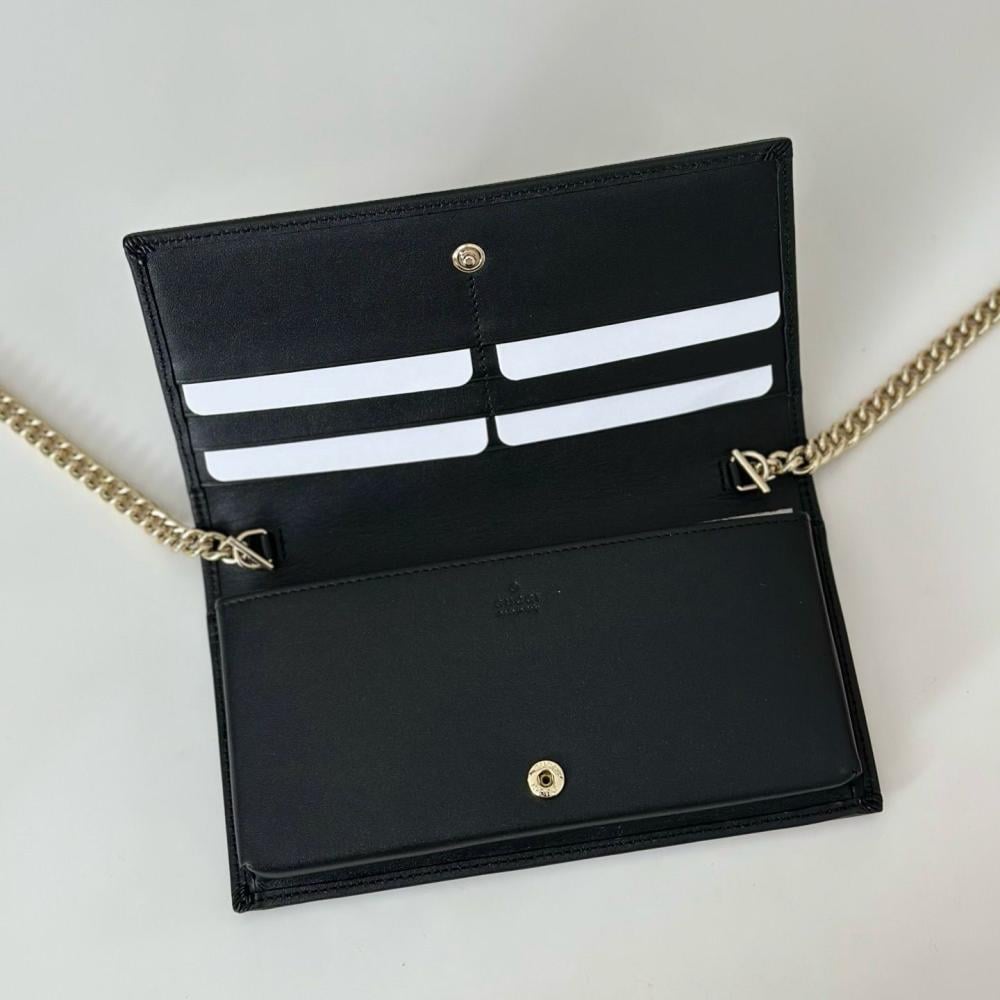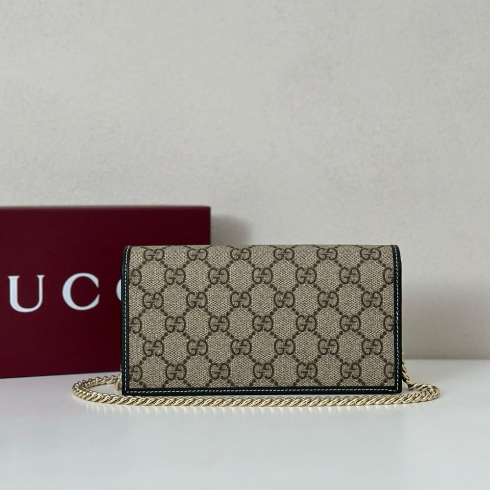 أضيفي لمسة من الفخامة الكلاسيكية إلى إطلالتك مع محفظة Gucci الأنيقة. تصميمها المميز بحلية Horsebit الأيقونية وسلسلتها الذهبية يعكس جوهر الدار الإيطالية العريقة. مثالية لحمل الضروريات بأناقة، سواء في مناسباتك المسائية أو طلعاتك اليومية!