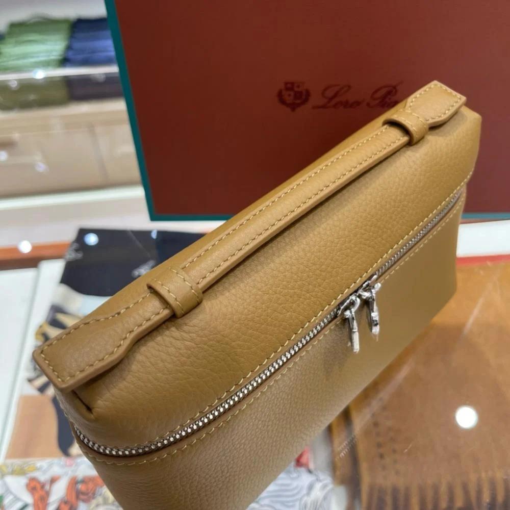 حقيبة أنيقة من Loro Piana بتصميم عملي يعكس البساطة الراقية. مصنوعة من جلد طبيعي محبب بملمس فاخر، وتأتي بمقاس مثالي للحمل اليومي، مع سحّاب معدني مزدوج بتفاصيل معدنية محفورة بعناية.