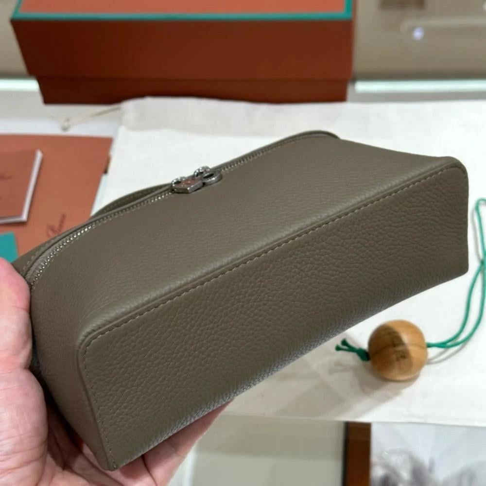 حقيبة أنيقة من Loro Piana بتصميم عملي يعكس البساطة الراقية. مصنوعة من جلد طبيعي محبب بملمس فاخر، وتأتي بمقاس مثالي للحمل اليومي، مع سحّاب معدني مزدوج بتفاصيل معدنية محفورة بعناية.