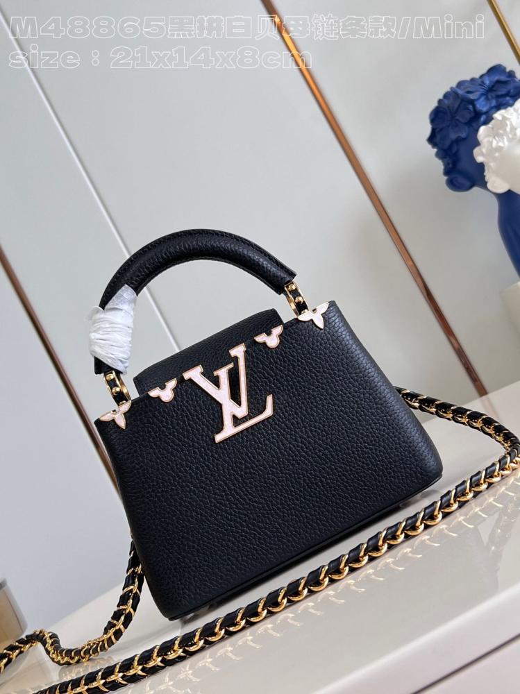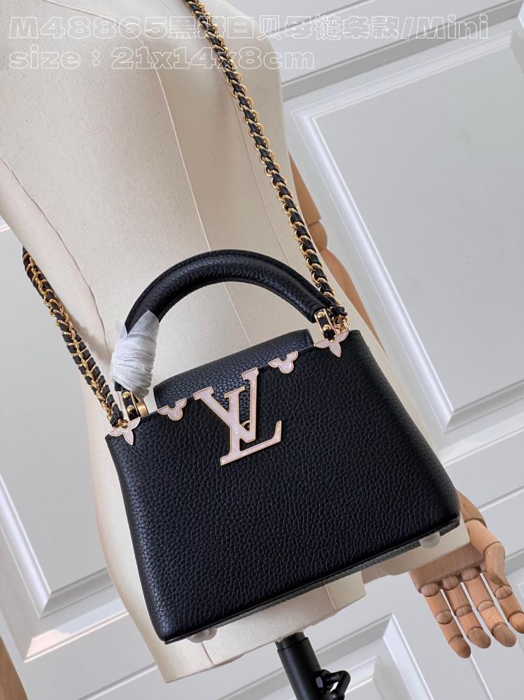 تميّزي بإطلالة فريدة مع حقيبة Louis Vuitton Capucines Mini – قطعة فنية فاخرة بلمسات ناعمة تجمع بين الجلد الطبيعي والتفاصيل الراقية. خيار مثالي لكل امرأة تبحث عن البساطة الممزوجة بالفخامة.