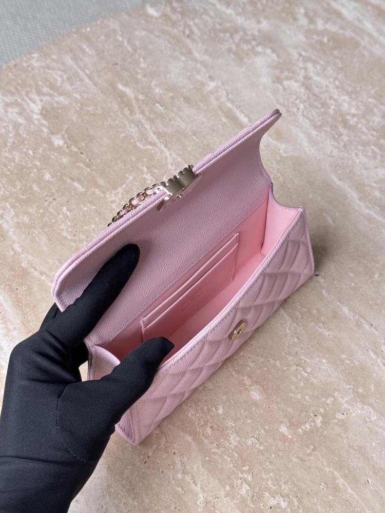 صُنعت من جلد كافيار فاخر بنقشة كوايل أيقونية، وتزيّنت بسلسلة مزدوجة متداخلة بالذهب الوردي، لتُحمل بكل سلاسة على الكتف أو باليد.