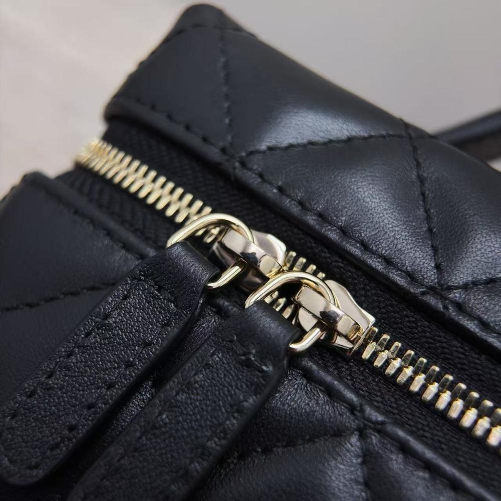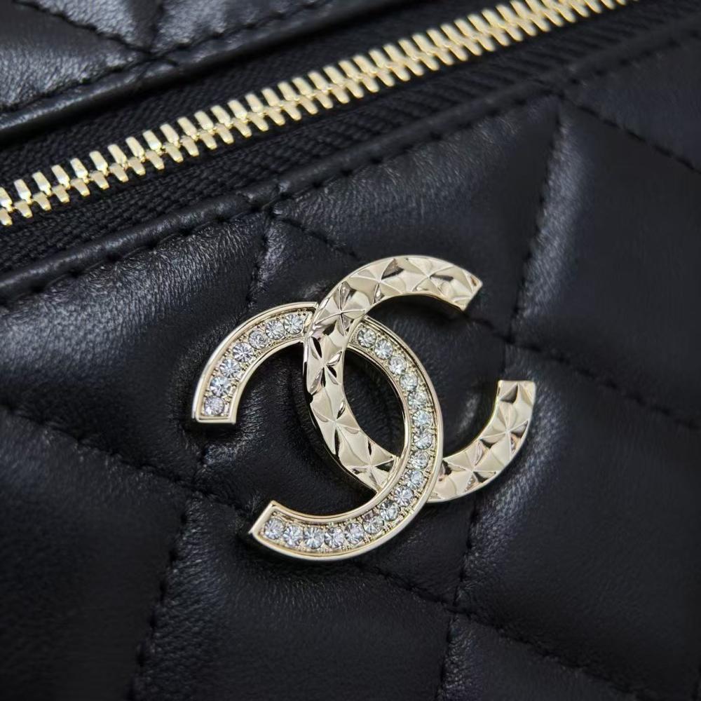 شنطة Chanel Mini Vanity Case بتفاصيلها الدقيقة وشعارها الكريستالي، قطعة تضيف لمظهرك لمسة من الفخامة العصرية. تصميم عملي وأنيق بحجم مدمج يناسب طلعاتك اليومية والمناسبات البسيطة. احصلي على لمسة شانيل الأصلية بخامة جلدية متينة وتصميم فريد .